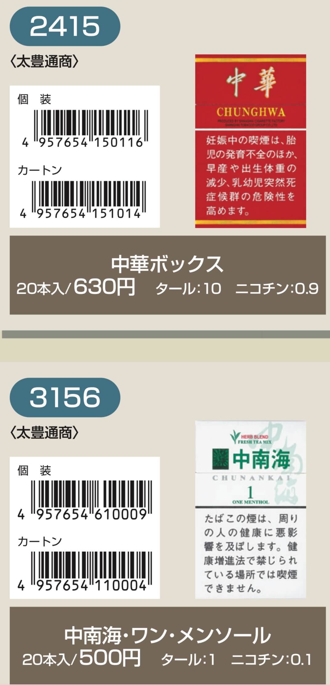 外国たばこ銘柄①「4桁の銘柄名コード番号」